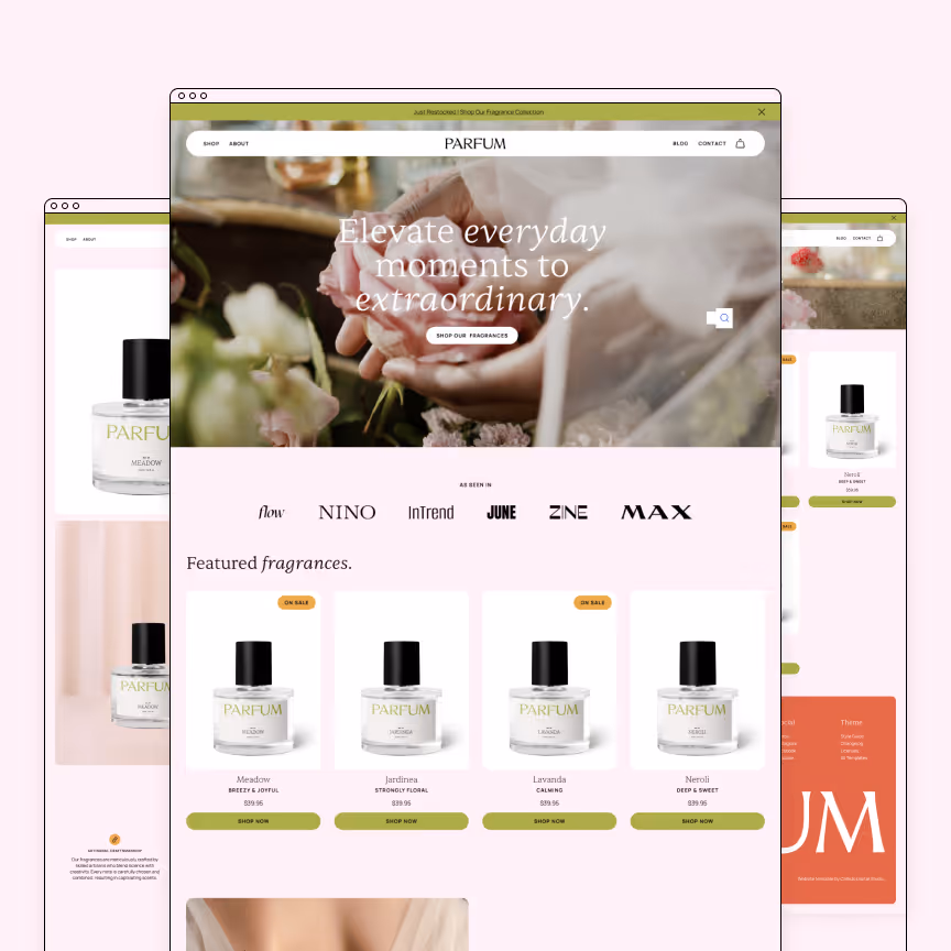 Parfum is a Webflow Ecommerce website template. With a focus on sales, this template features a detailed product page, multiple product collections, storytelling brand pages, built-in blogging, and customer reviews perfect for an online shop.